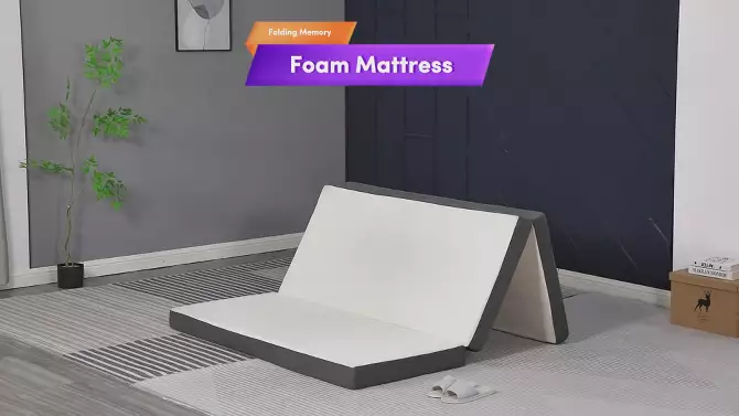 FDW 4 inch Queen Folding Mattress Tri Fold Memory Foam Mattress Topper Foldable Mattress Topper with Washable Cover for Camping, Guest, Floor RV