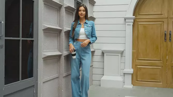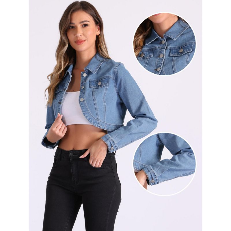 INSPIRE CHIC Women's Collared Button Down Long Sleeve Crop Jean Jacket Large Light Blue
