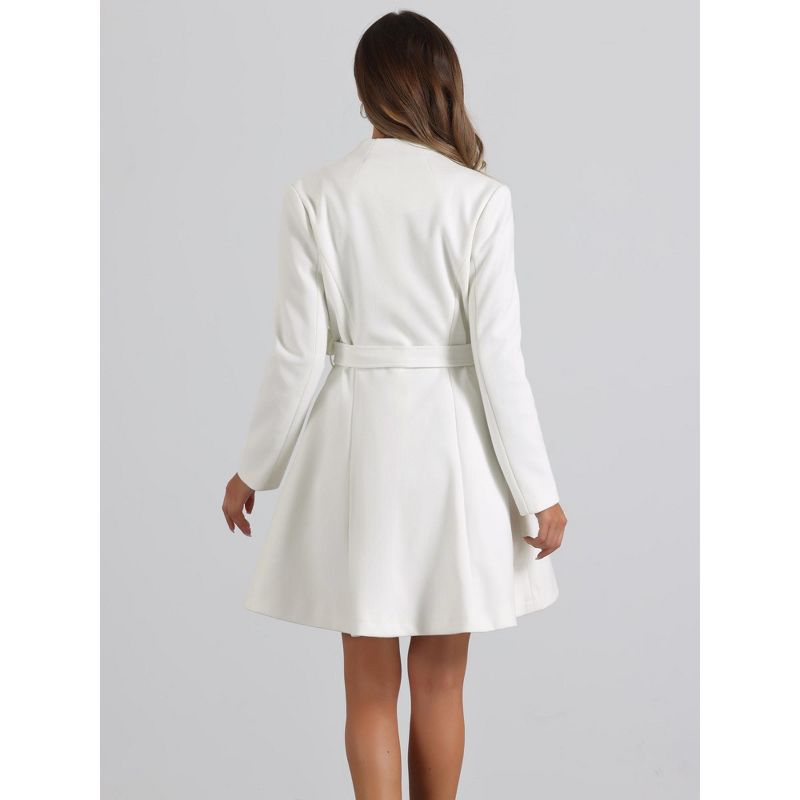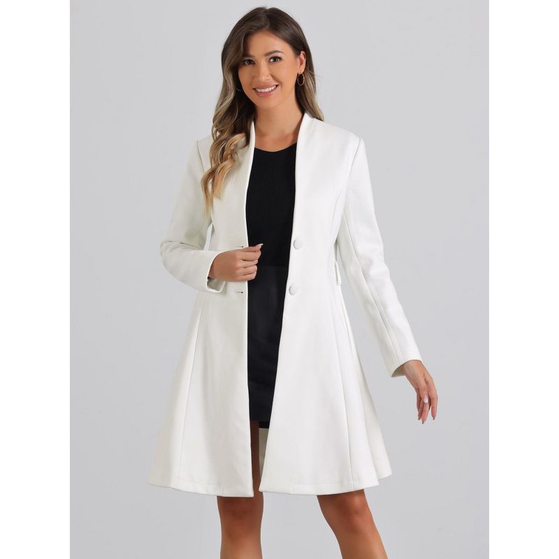 INSPIRE CHIC Women's Vintage Collarless Winter Elegant A-Line Coats with Belt White Large