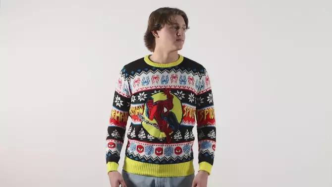 Disney Marvel Men's Spider-Man Spidey Jump Adult Ugly Christmas Pullover Sweater (Yellow/Black, X-Large) Multicolored