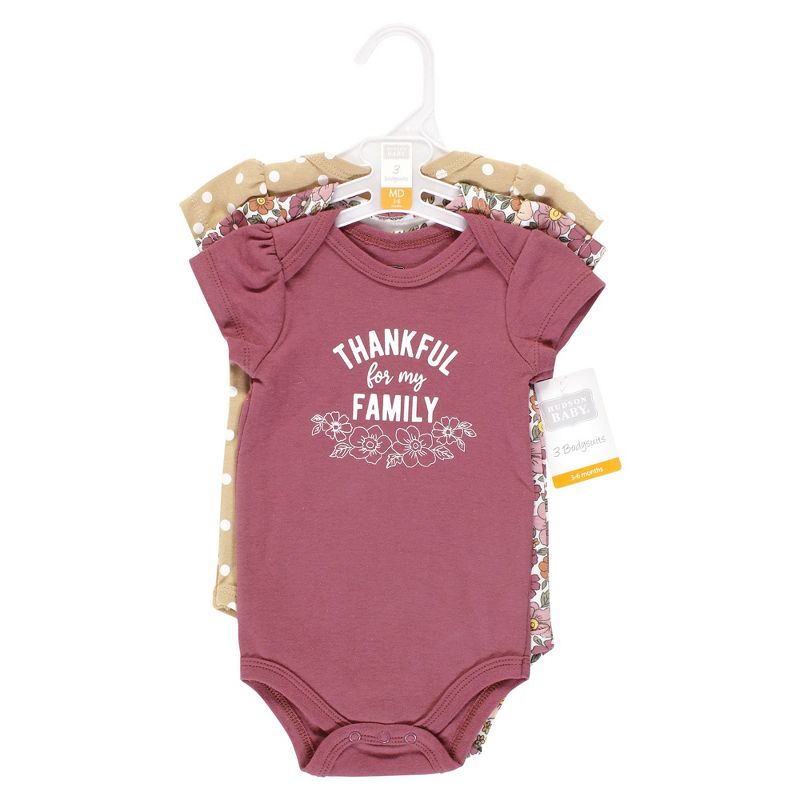 Hudson Baby Infant Girl Cotton Bodysuits, Thankful Floral, 0-3 Months
