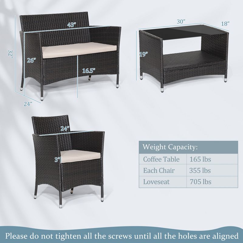 Costway 8PCS Patio Rattan Furniture Set Armrest Cushion Sofa Coffee Table with Shelf Garden