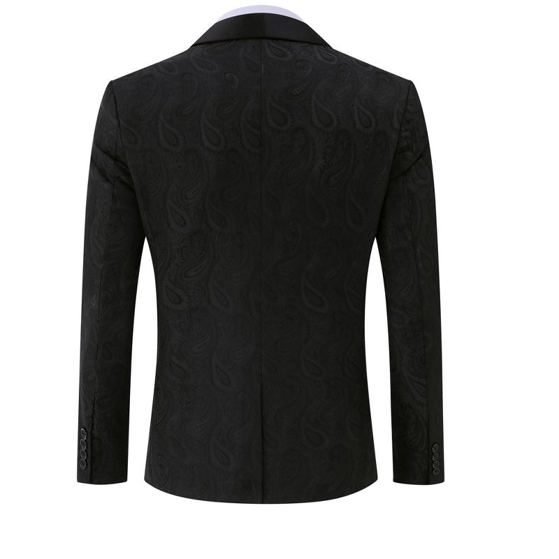 Men's Paisley Tuxedo Jacket Shawl Lapel One Button Suit Jacket Floral Blazer for Dinner Wedding Prom Party Black M