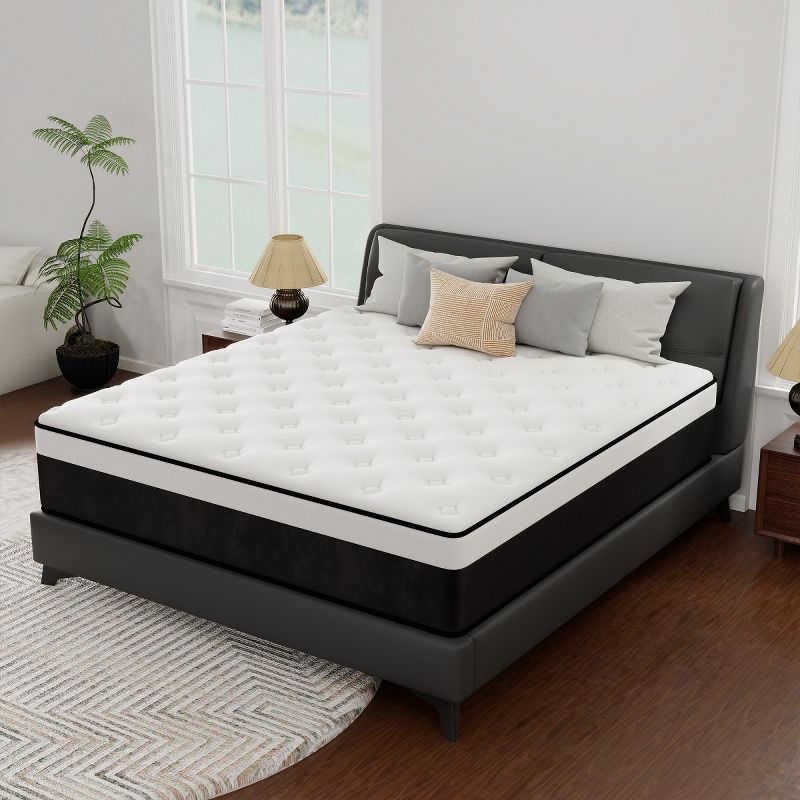 CHEVNI 8 Inch Queen Size Mattress in a box Hybrid Spring Memory Foam Medium Firm - White