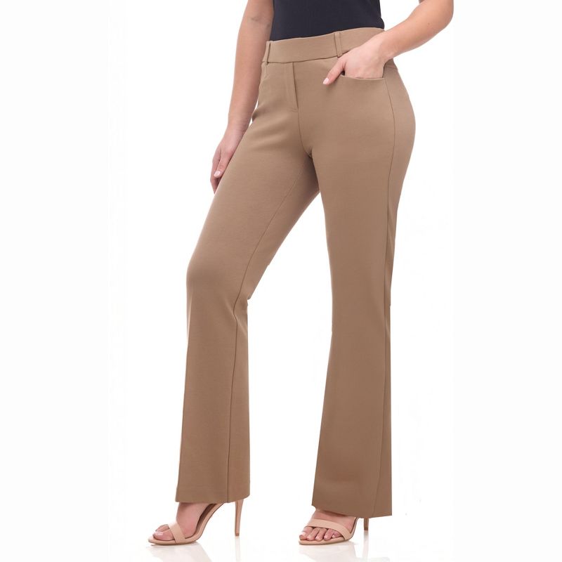 Rekkuna Women's Pull-On Bootcut Work Pants – Mid-Rise Stretch Office Slacks with Front Pockets and Belt Loops - Dark Sand, X Large
