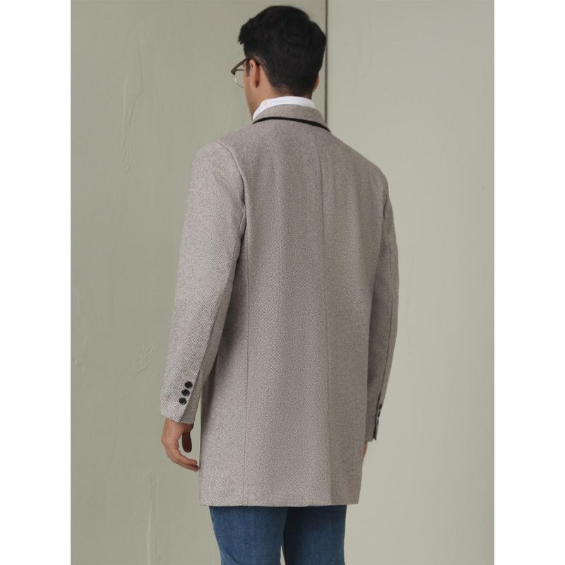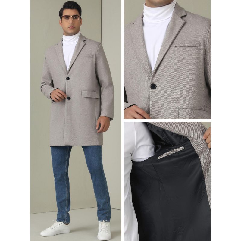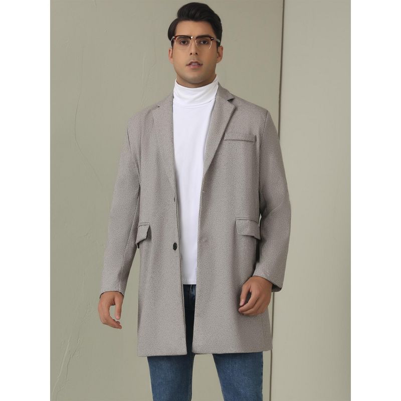 Lars Amadeus Men's Classic Fit Single Breasted Winter Herringbone Trench Coat Gray Small