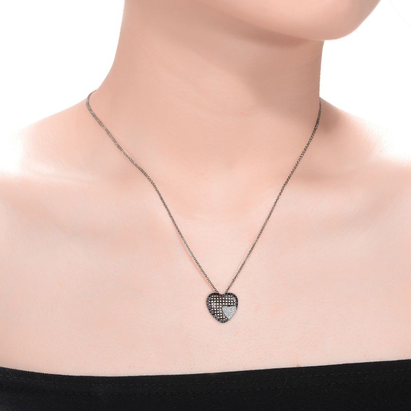 Guili Halloween Cubic Zirconia Sterling Silver Black Plated Heart Shape Lace Pendant