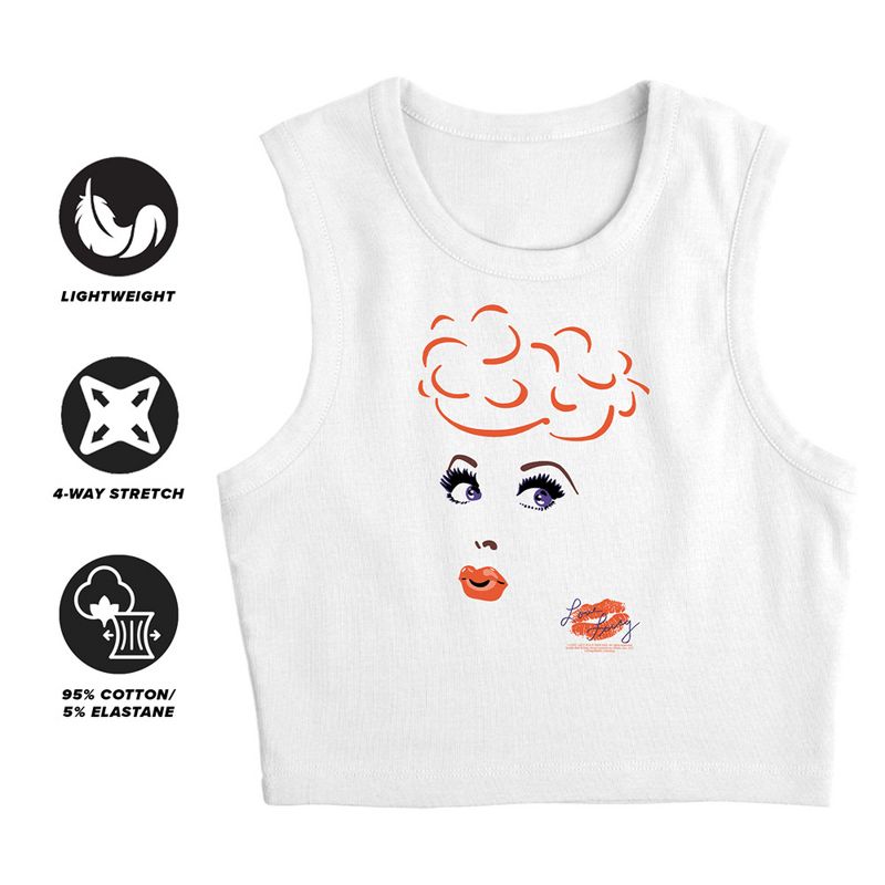 Women's I Love Lucy Eyelashes Sleeveless Crop Top Tank White X Large