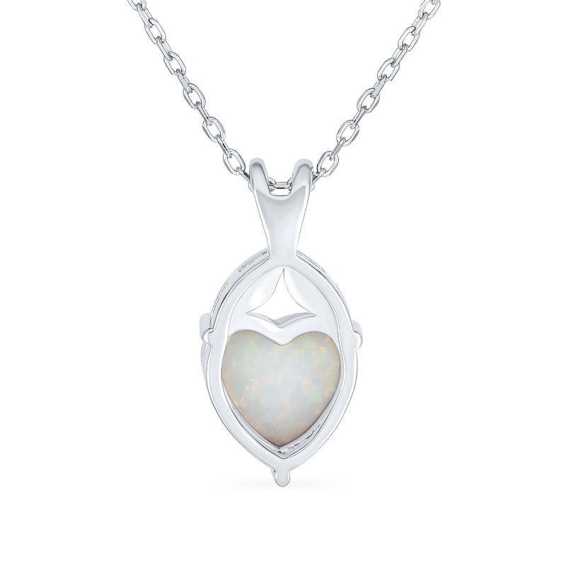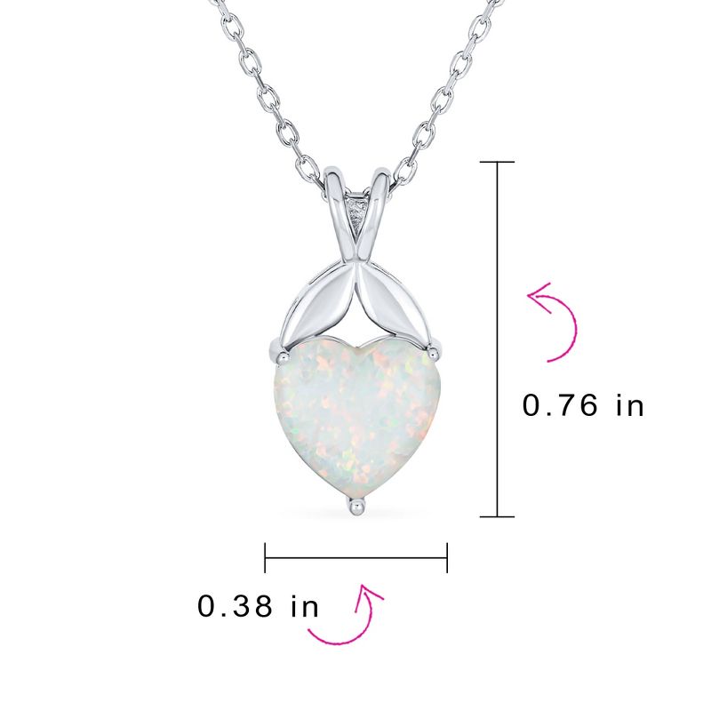 Bling Jewelry Opulence White Created Opal Solitaire Heart Pendant Necklace .925 Sterling Silver