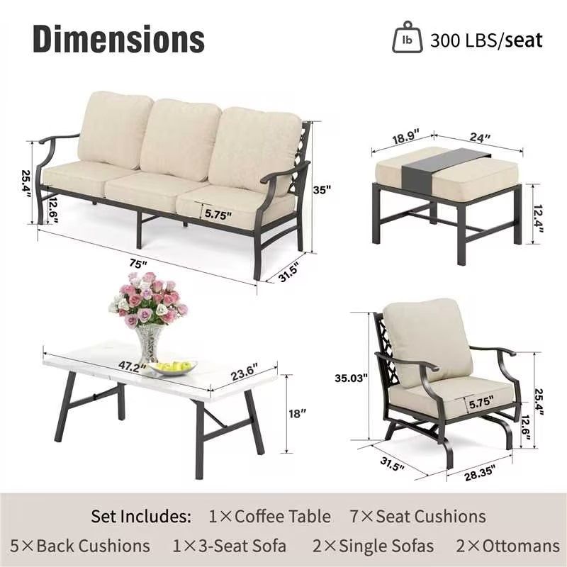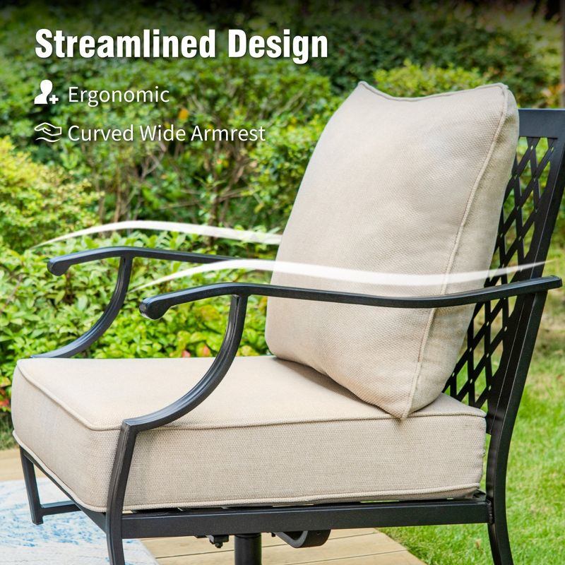 Captiva Designs 6pc Metal Patio Outdoor Conversation Set with Rocking Grid-back Chairs, Ottomans and Coffee Table Beige