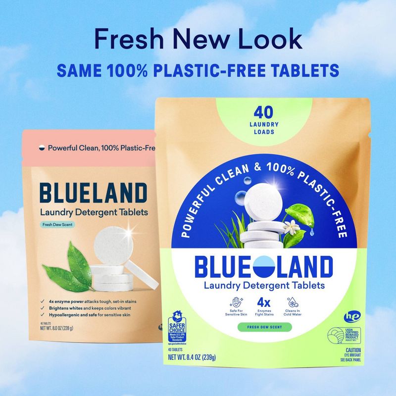 Blueland Fresh Dew HE Deep Cleaning Concentrated Laundry Detergent Tablets 40 Pacs - 8oz