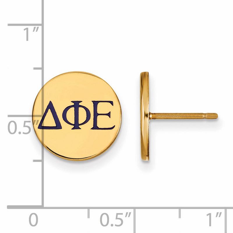 Black Bow Jewelry 14k Yellow Gold Plated Sterling Silver Delta Phi Epsilon Greek Life Enameled Letters Disc Stud Earrings
