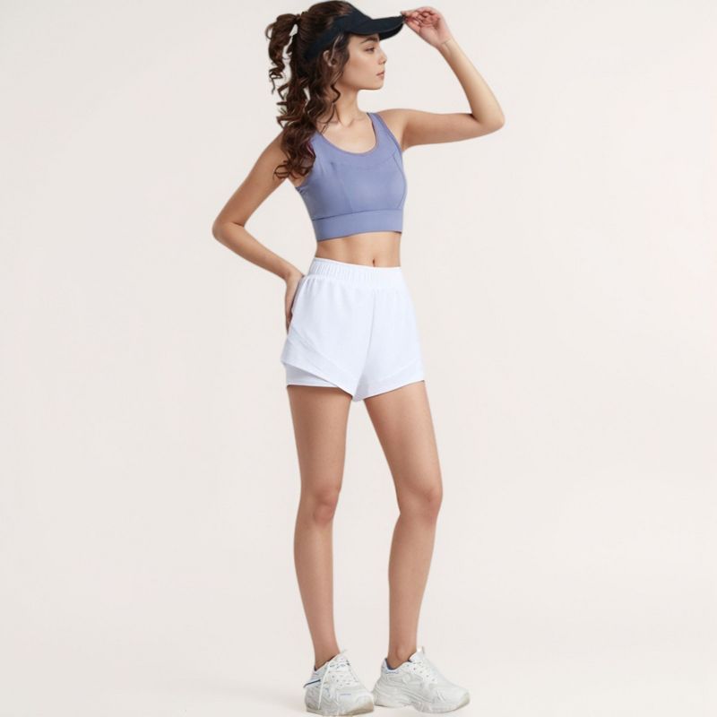 Anna-Kaci Active Women's High Waist Layered Active Shorts with Inner Compression Liner and Wide Elastic Waistband - Medium, White