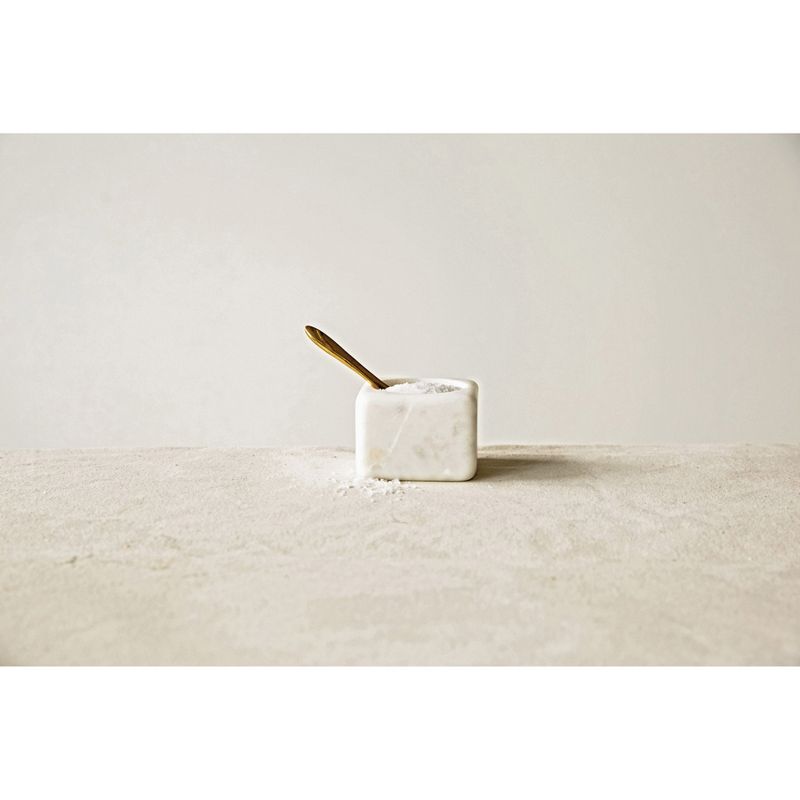 Storied Home Square Marble Bowl with Brass Spoon, White