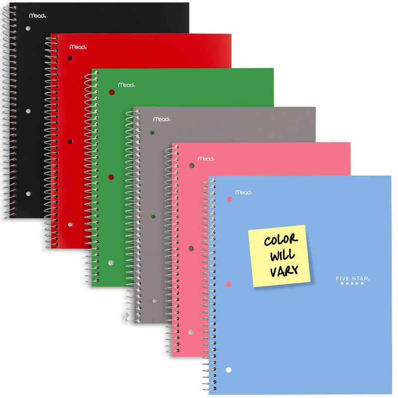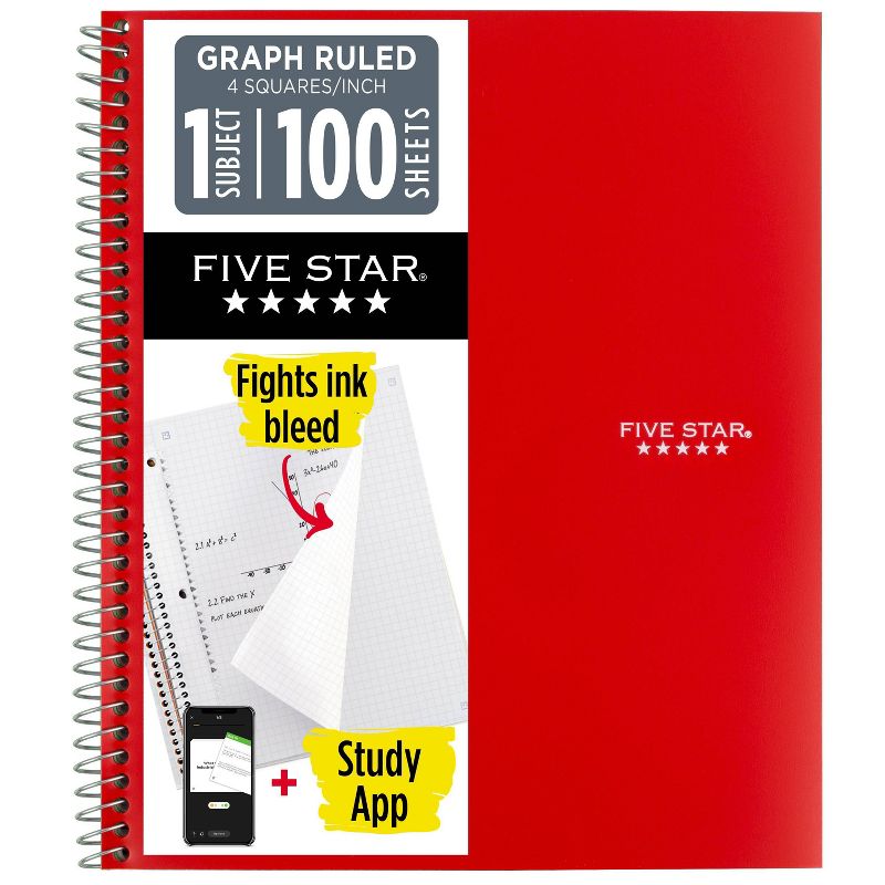 Five Star 1 Subject 100pg Graph Ruled Solid Spiral Notebook: Multicolor, 8.5x11", Flexible Cover, 3 Hole Punched