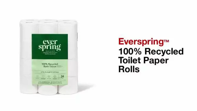 100% Recycled Toilet Paper - 24 Rolls - Everspring™