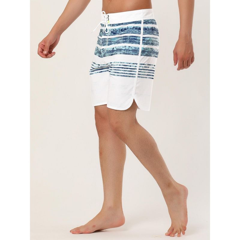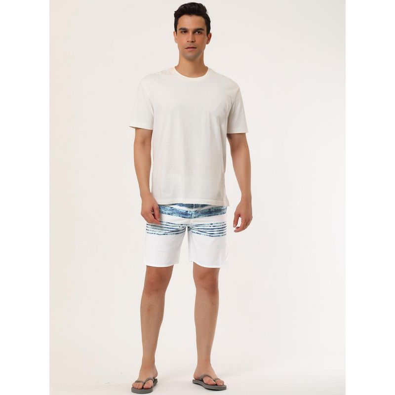 INSPIRE CHIC Men's Drawstring Swimming Surfing Color Block Board Shorts White Blue 32
