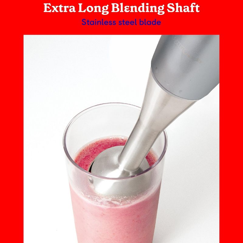 BETTY CROCKER Immersion Blender, 2-Speed Hand Mixer with Stainless Steel Blade, Beaker & Whisk, 250W, Silver