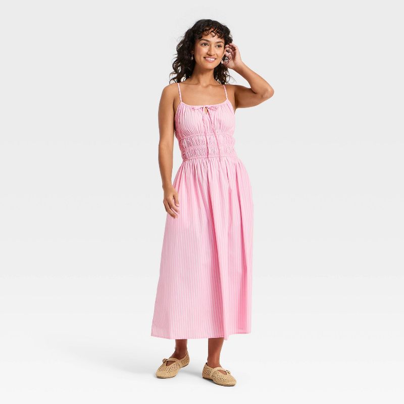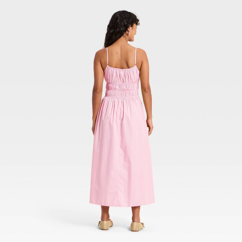 Women's Smocked Midi Dress - Universal Thread™ Pink Striped M