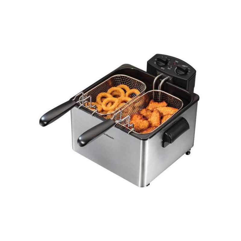 Hamilton Beach 3qt Double Deep Fryer 35036: Electric Oil Fryer, 1800W, Dishwasher-Safe Parts, Cast Aluminum, Gray