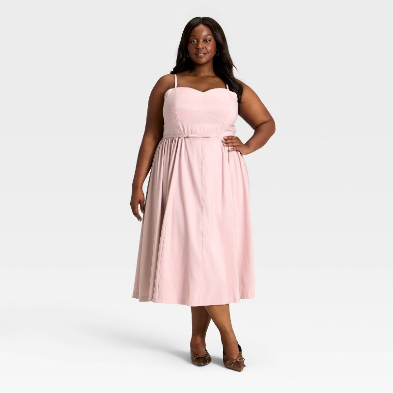 Women's Bow Belt Midi Dress - A New Day™ Pink 3X