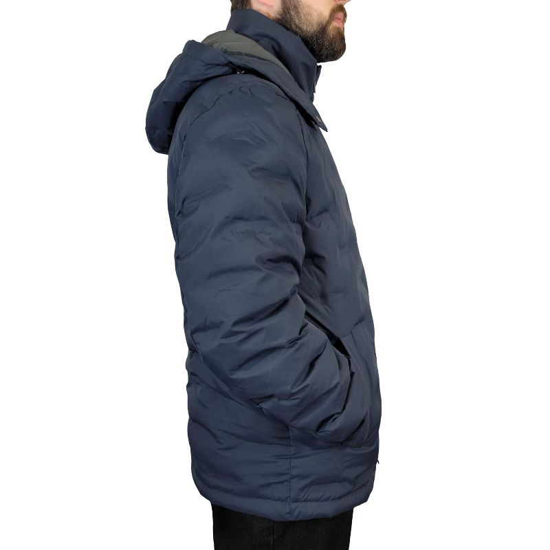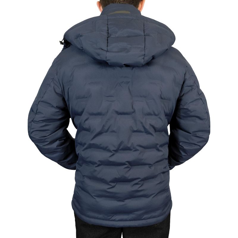 Men's Padded Quilted Design Hooded Jacket Navy XL