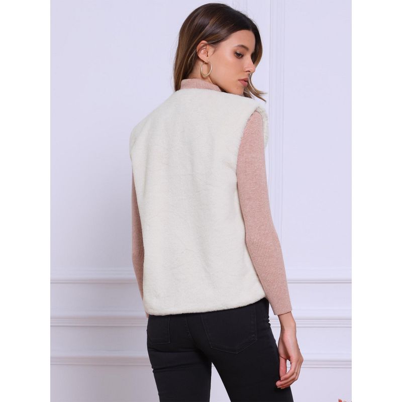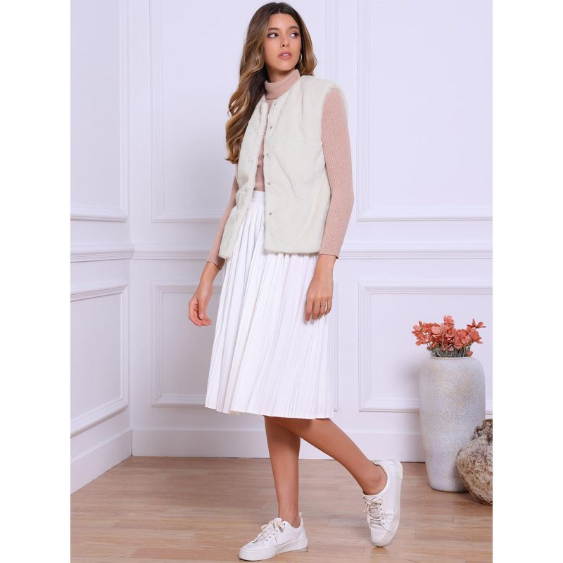 INSPIRE CHIC Women's Button Down Sleeveless Open Front Winter Faux Fur Vest Jacket Apricot Large
