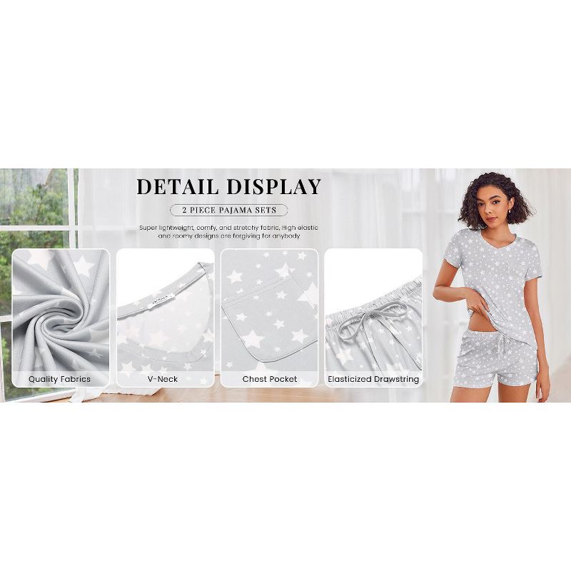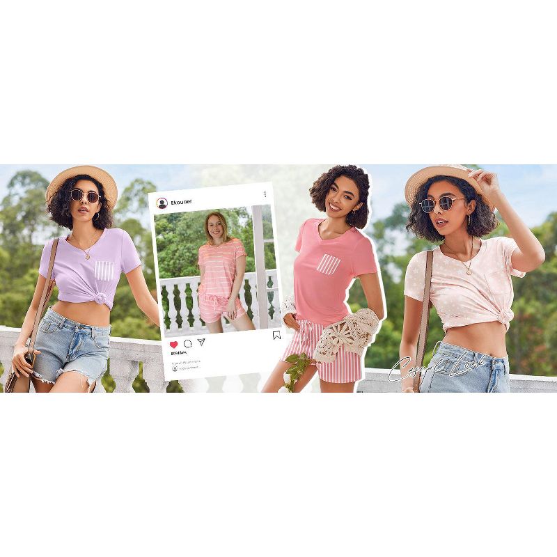 Ekouaer Womens Pajama Sets Short Sleeve Pajamas for Women Sets Soft Lounge Sets Casual V Neck Sleepwear PJS Purple Stripe M