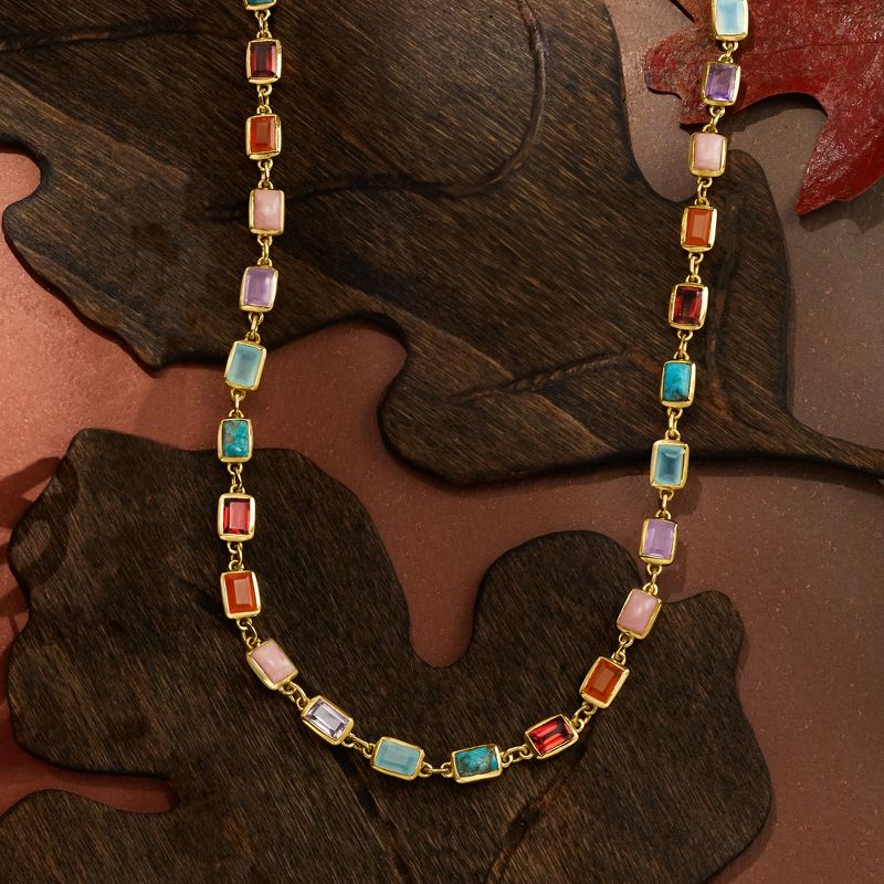 Ross-Simons Multi-Gemstone Necklace in 18kt Gold Over Sterling Size 18