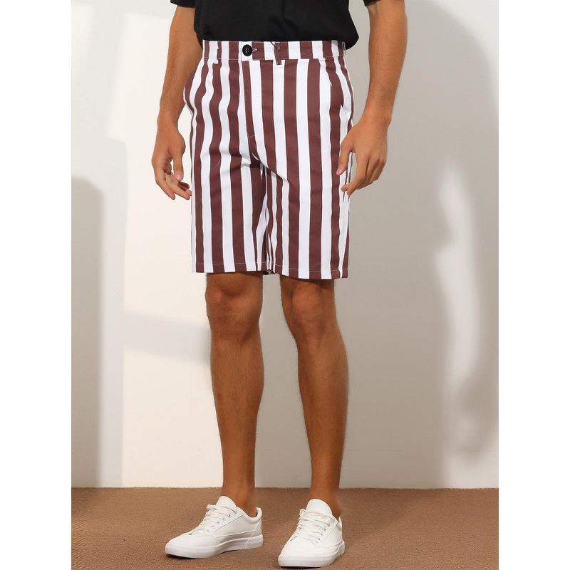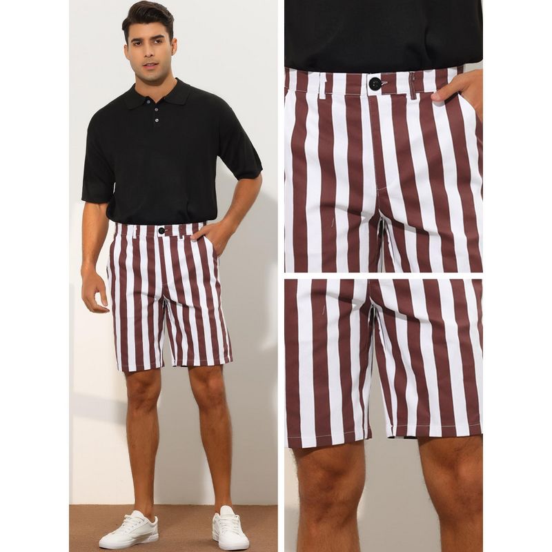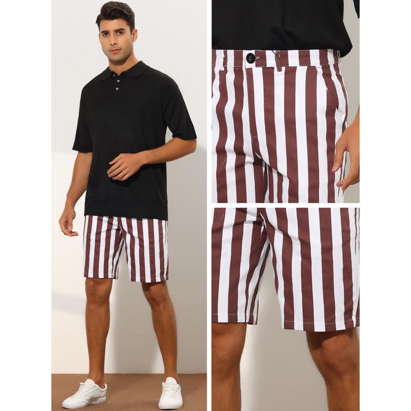 Lars Amadeus Men's Regular Fit Chino Striped Pattern Shorts 2 Packs Burgundy/Yellow 34