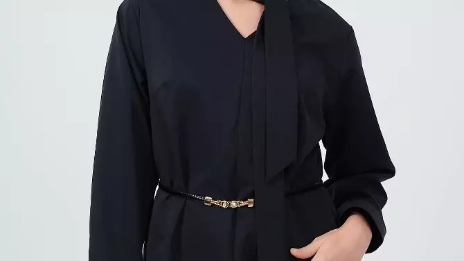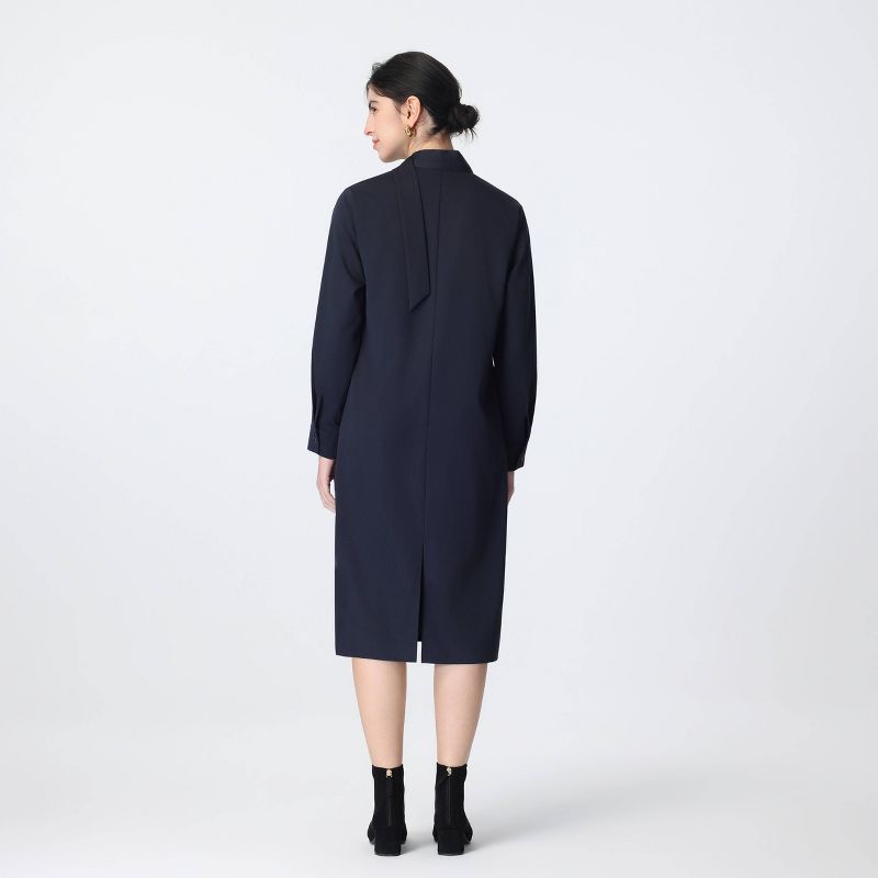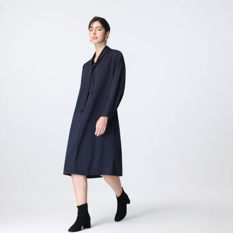 Women's Long Sleeve Scarf Midi Dress - A New Day™ Dark Blue L
