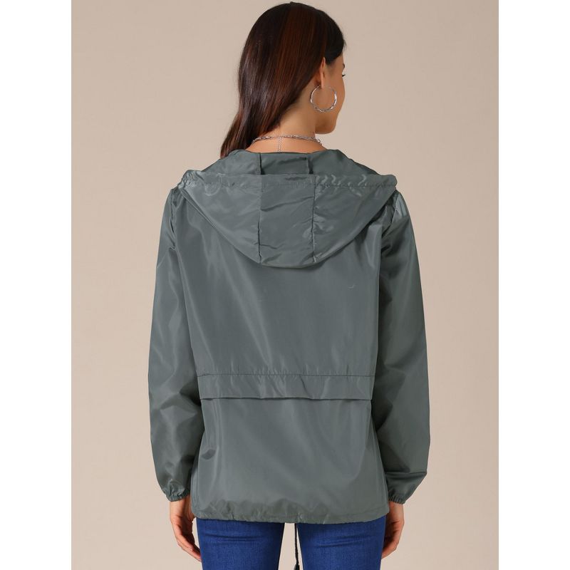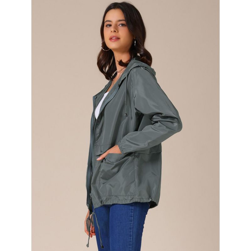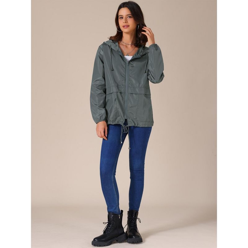 INSPIRE CHIC Women's Adjustable Drawstring Waterproof Windbreaker Lightweight Hooded Raincoats with Pockets Medium Dark Grey