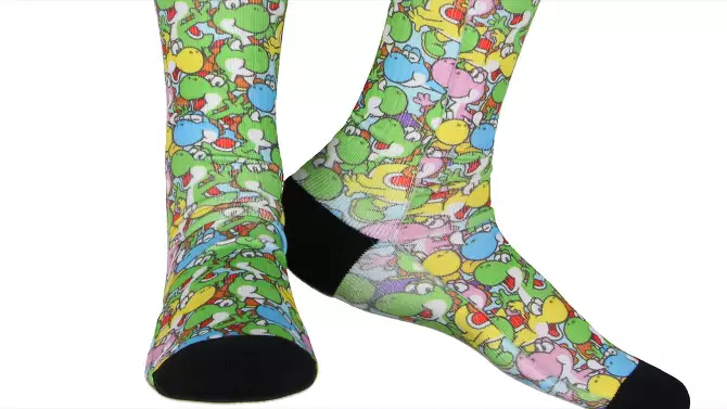 Super Mario Socks Men's Yoshi Dino Sublimated Crew Socks