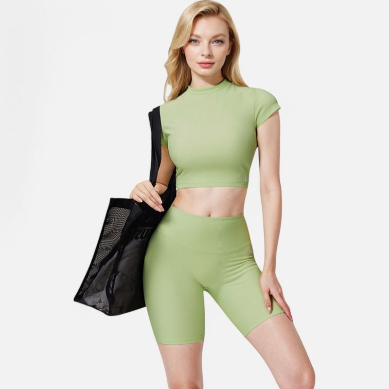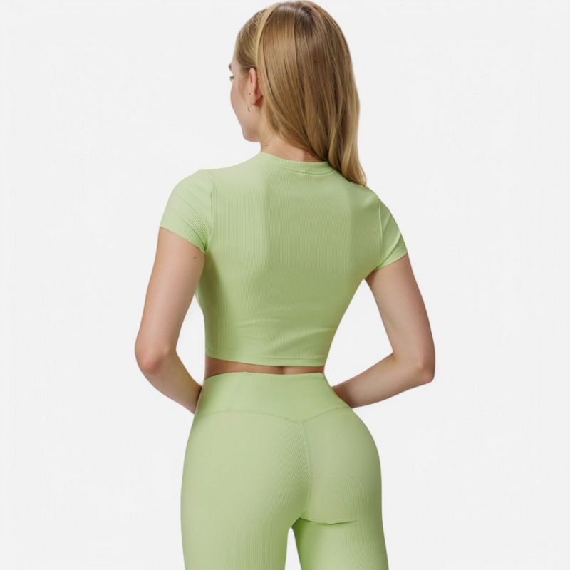 Anna-Kaci Active Women's Short Sleeve Ribbed Crop Top with Crew Neck and Stretch Fabric - Medium, Green