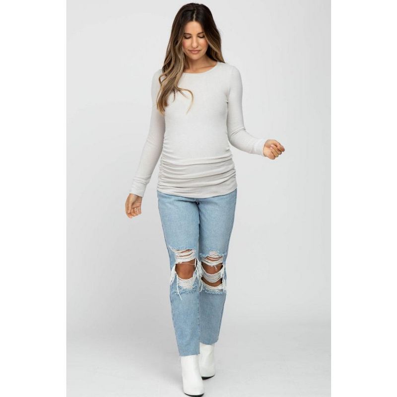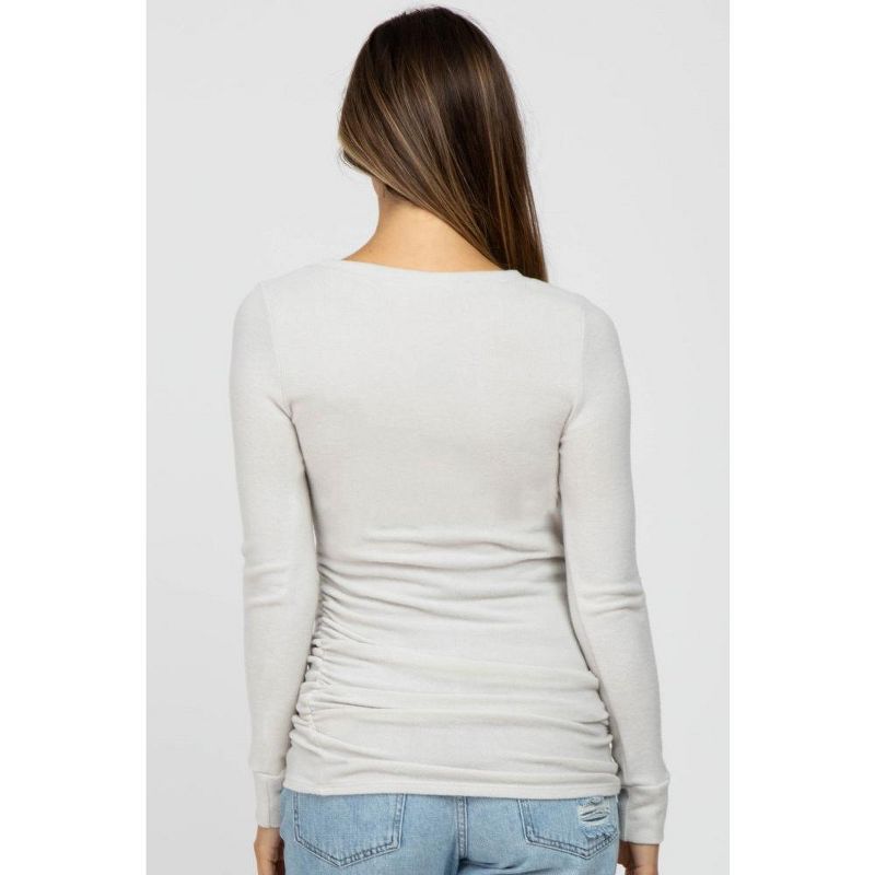 PinkBlush Cream Soft Knit Ruched Maternity Top Cream Medium