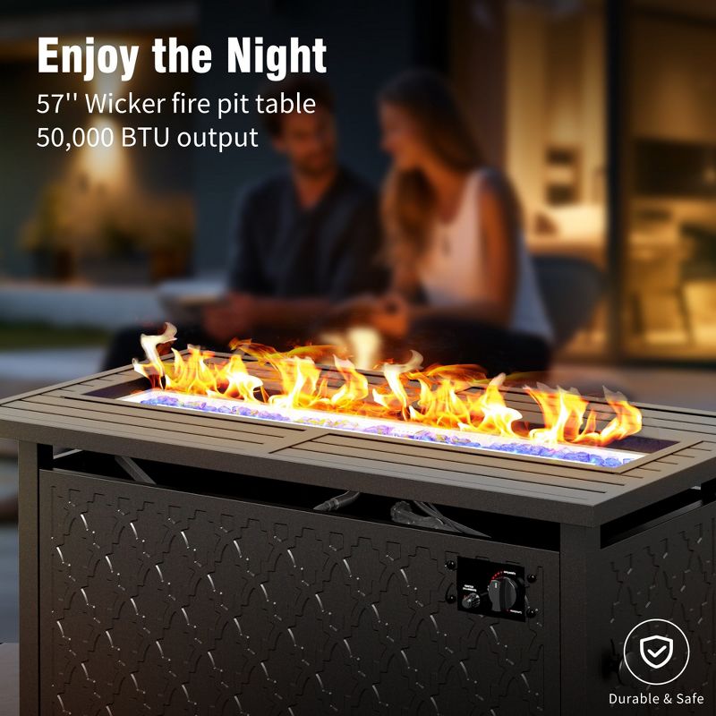 Captiva Designs 6pc Metal Patio Outdoor Conversation Fire Pit Set with Rocking Grid-back Armchairs and Ottomans for Garden, Poolside, Backyard