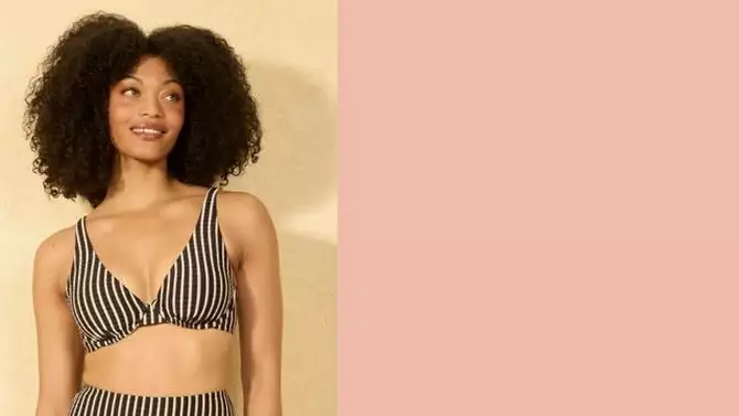 Women's Striped Ribbed Demi Underwire Bikini Top - Shade & Shore™ Multi 34DD