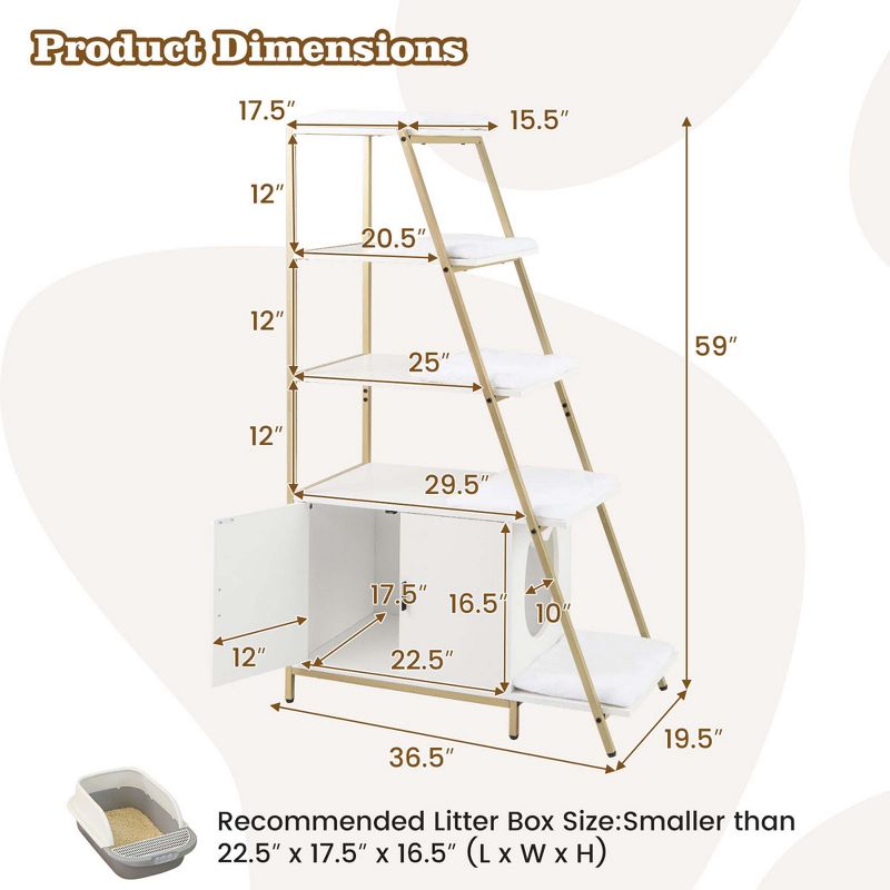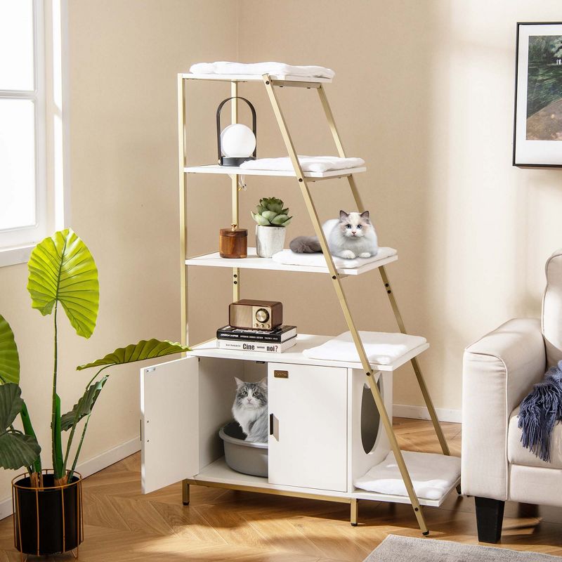 Costway Petsite Large Cat Litter Box Enclosure 2-in-1 Hidden Cat Washroom Furniture with Storage White