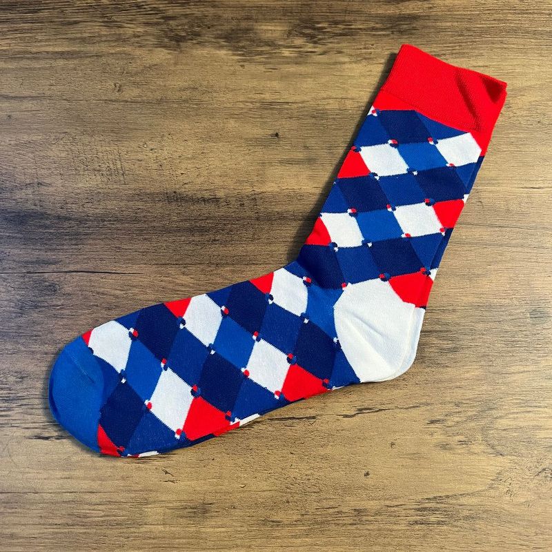 Fun Pattern Socks (Red, Blue, White) - Men's Sizes, Adult Large from the Sock Panda