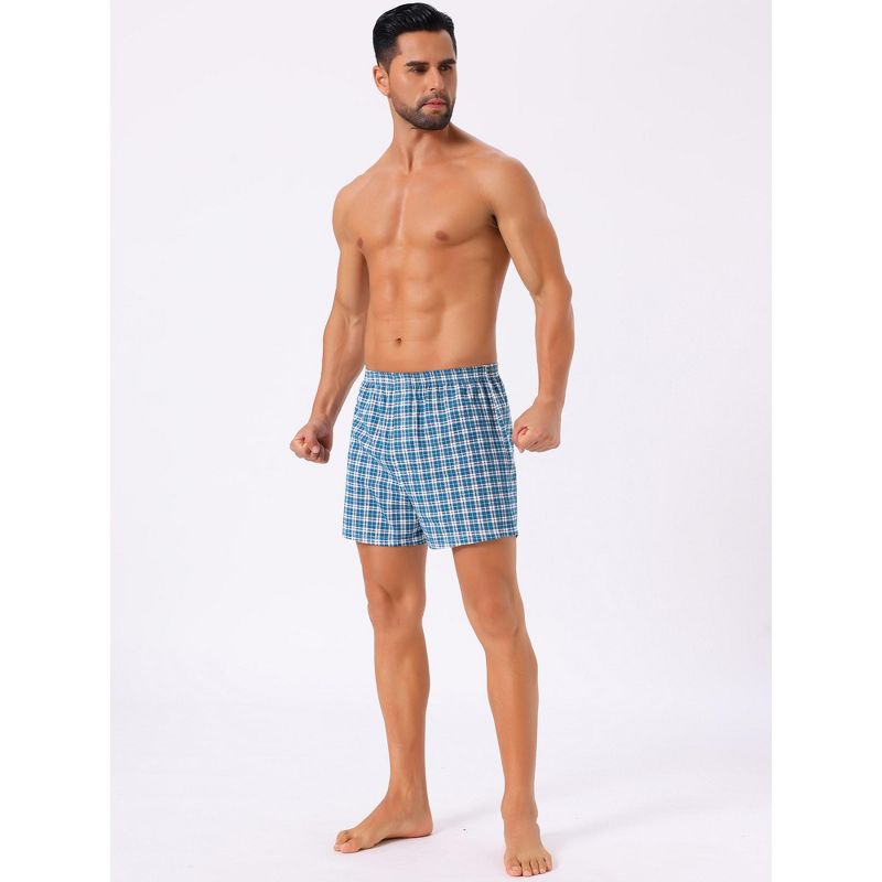 INSPIRE CHIC Men's 2 Pack Classic Elastic Waistband Plaid Pattern Boxer Shorts 2 Blue White 36