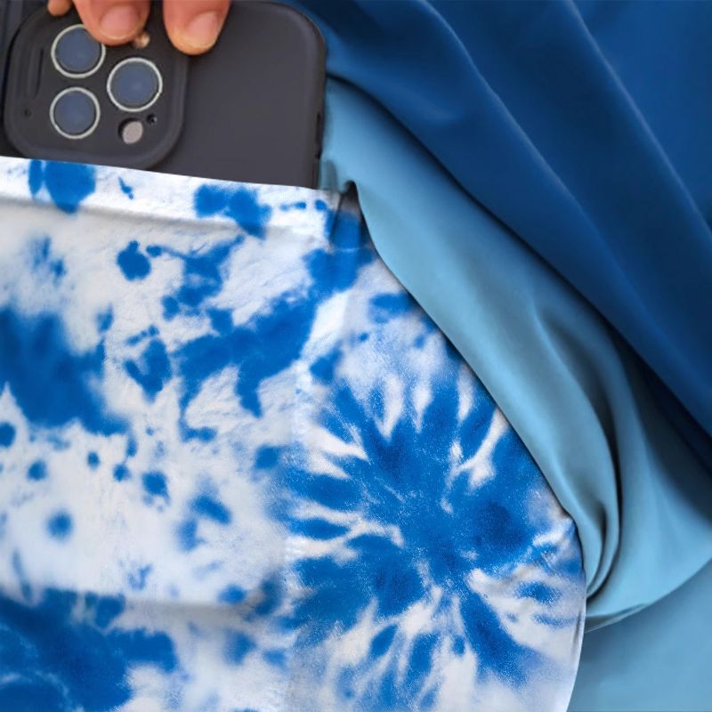 Men's Quick-Dry Swim Trunks, Double Layer Tie-Dye Print Board Shorts with Pockets Royal Blue L
