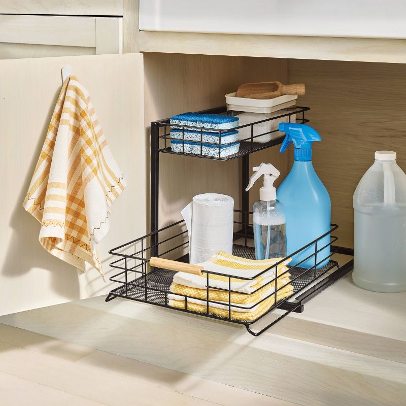 Two Tiered Metal Under Kitchen Sink Storage Organizer Black - Brightroom™