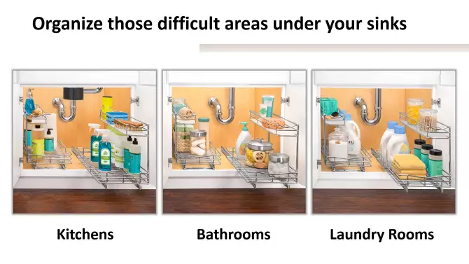 Link Professional 11.5" x 18" Slide Out Under Sink Cabinet Organizer - Pull Out Two Tier Sliding Shelf: Chrome-Plated Steel, Kitchen Storage