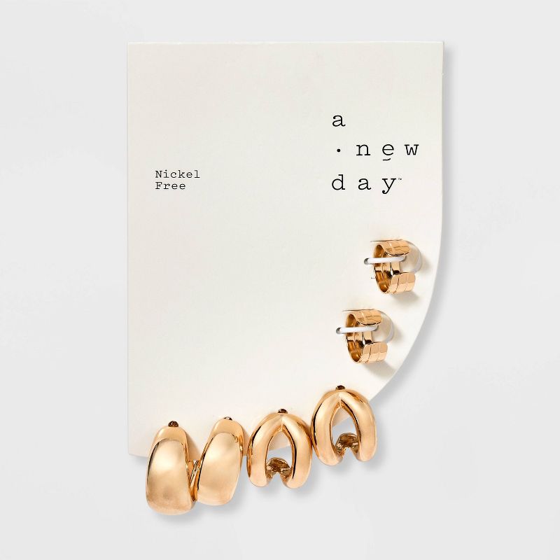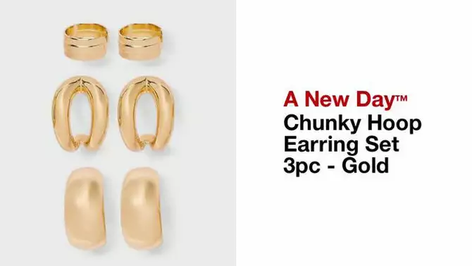 Chunky Hoop Earring Set 3pc - A New Day™ Gold: Nickel-Free Metal, Post Closure, 0.74" Length