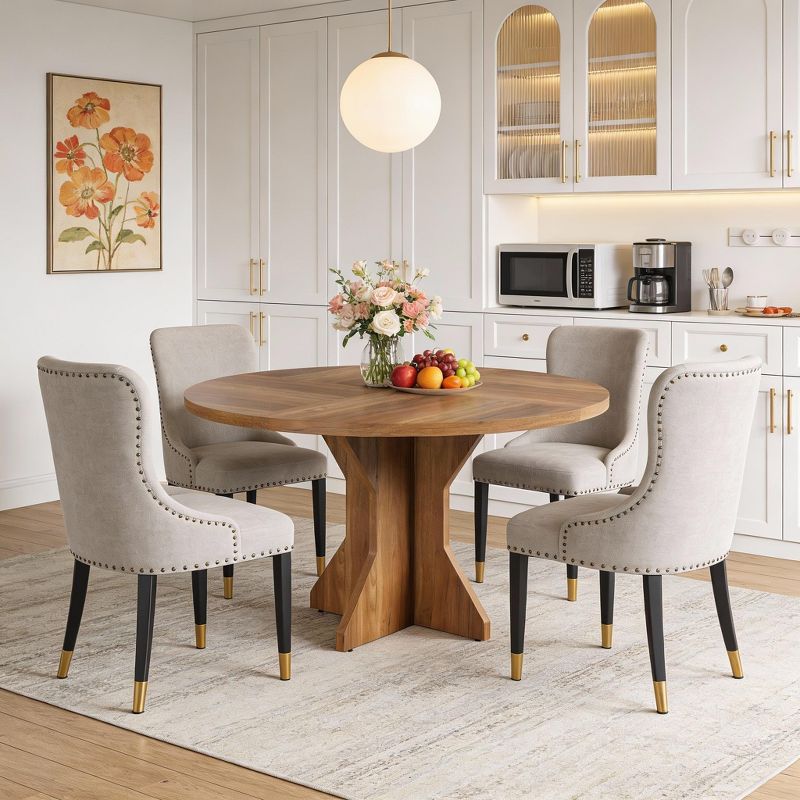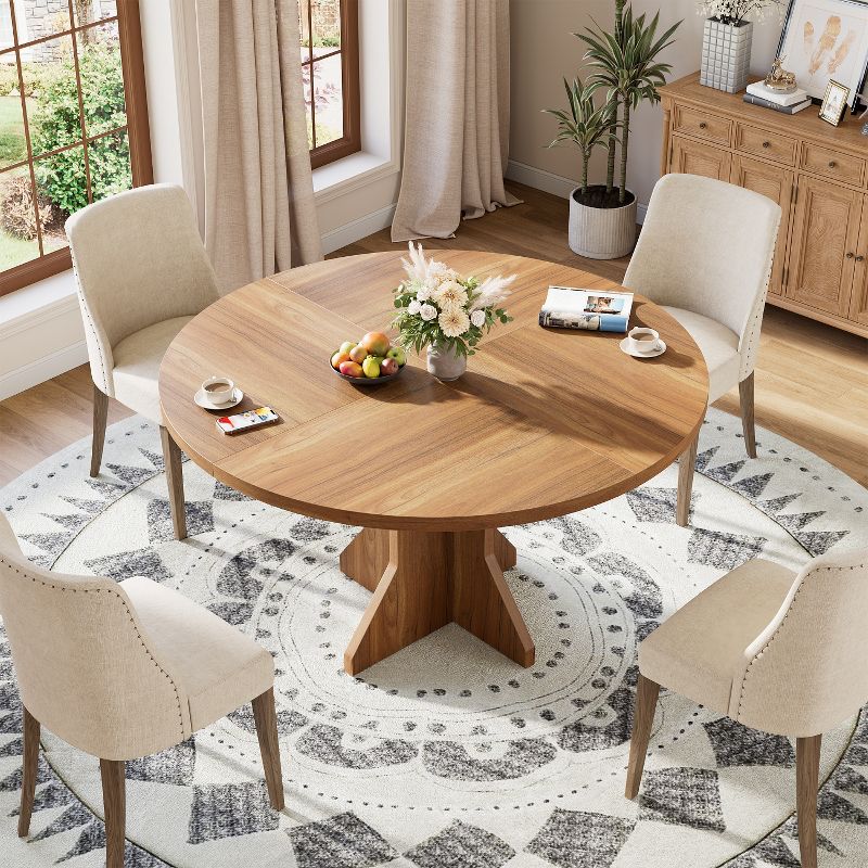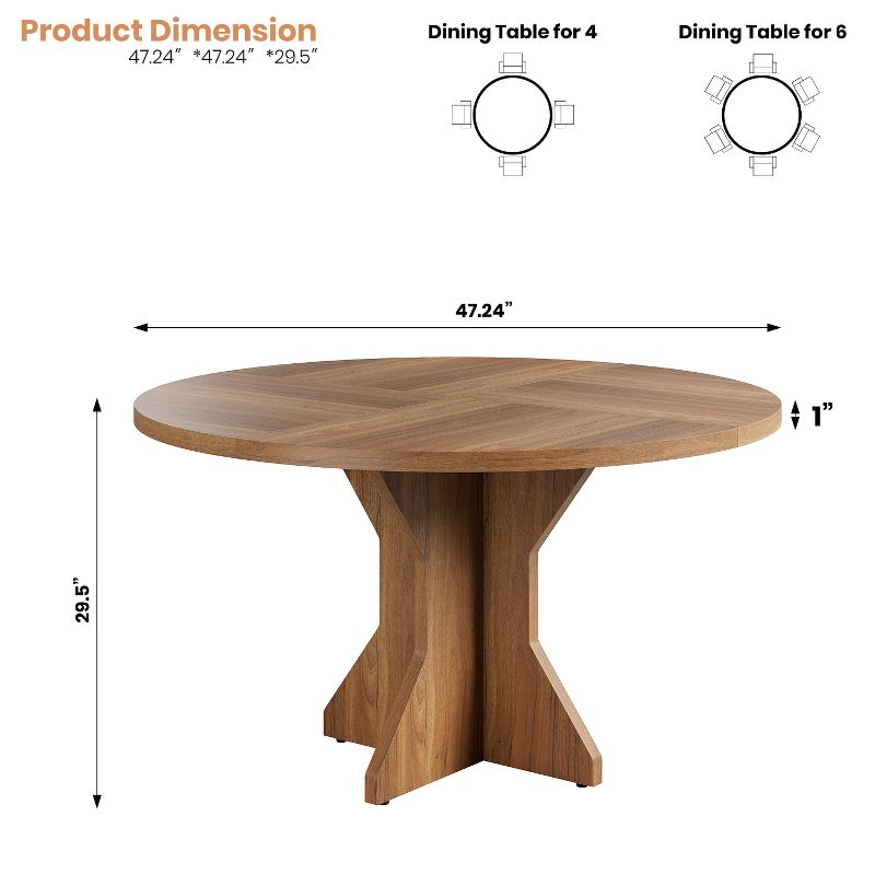 47" Dining Table for 4-6 People Circle Kitchen Dinner Table with Sturdy Pedestal Base, Small Spaces Dinning Room Furniture for Living Room, Kitchen