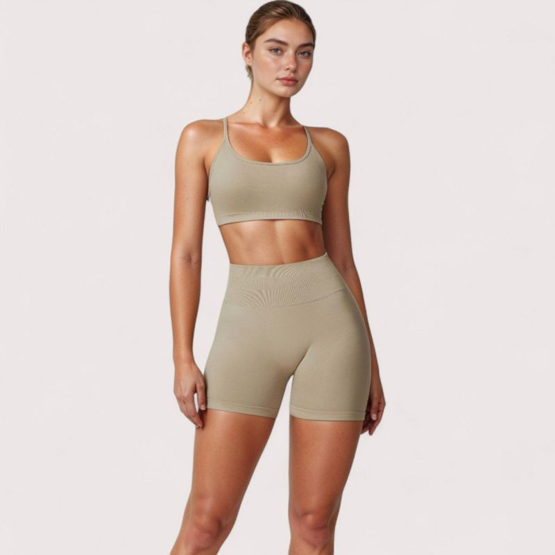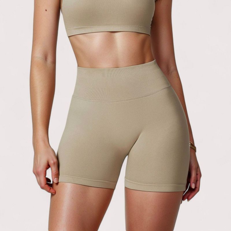 Anna-Kaci Active Women's High Waist Compression Biker Shorts with Sculpting Seam Detail and Stretch Fit Fabric - Small, Beige