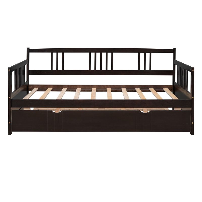Sapphtopaz Twin Day Bed with Trundle or Drawers, Wooden Bed Frame with Slatted Sides, Bedroom Furniture, Espresso