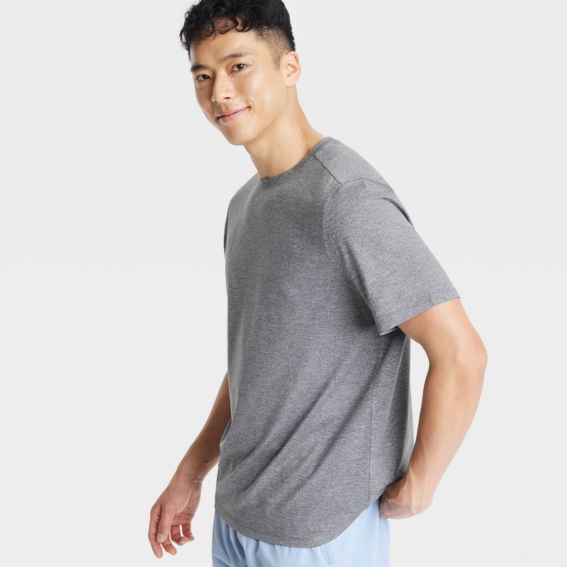 Men's Relaxed Fit Soft Stretch T-Shirt - All In Motion™ Gray XL: UPF 50+, Jersey, Crew Neck