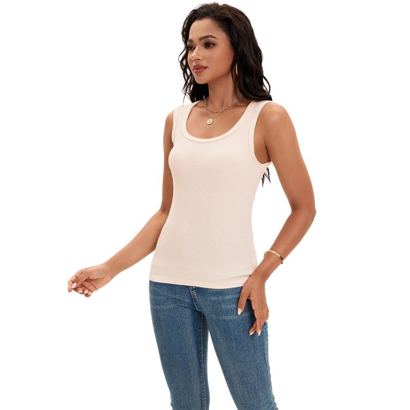 ATHLECHIC Women's Scoop Neck Ribbed Wide Strap Sleeveless Workout Basic Sport Tank Tops Apricot Small