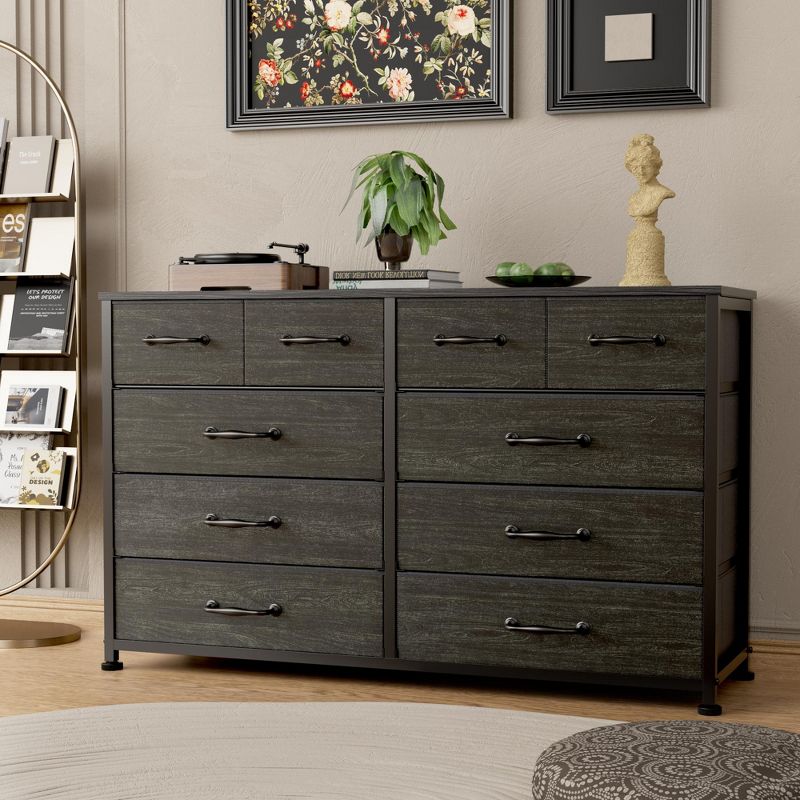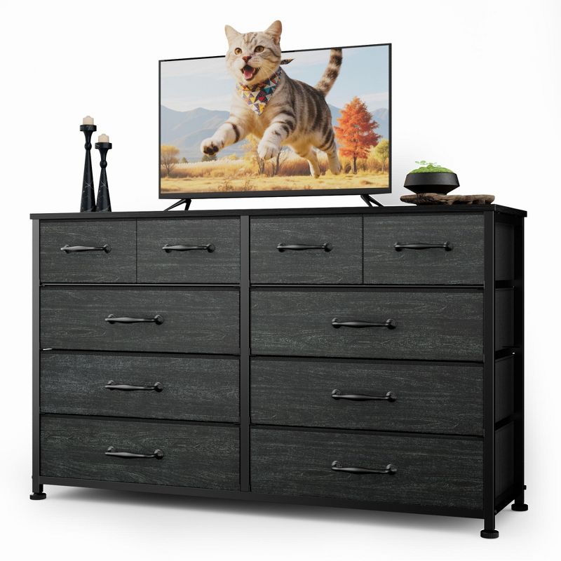 Large Black 10 Drawer Dresser Wide Fabric Storage Chest of Drawers Organizer Unit Bedroom Furniture Entryway 50 Inch TV Stand